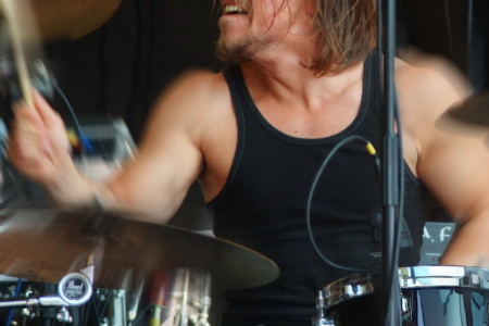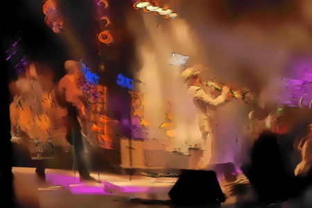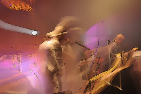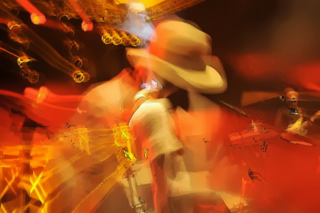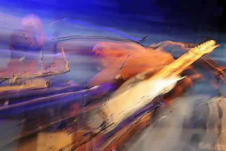 Als Zappanale-Fotograf hatte ich aber jahrelang die Möglichkeit, ganze Konzerte aufzunehmen. Ich bin ein neugieriger Mensch. Wenn ich die eigentlichen Bilder im Kasten hatte, begann die Zeit des Experimentierens. Die Ergebnisse seht ihr hier in dieser Rubrik. Ich verrate nicht genau, wie ich es gemacht habe. Was ich euch sagen kann ist, dass es mit Langzeit- und Mehrfachbelichtungen, mit Zoomen, Schwenken und Drehen zu tun hat. Du musst immer wieder schauen, was du erzeugt hast und die nächsten Versuche daran ausrichten. Dabei wechselt aber ständig das Licht, sowohl in Helligkeit als auch Farbe und manche Musiker sind auch sehr agil auf der Bühne.